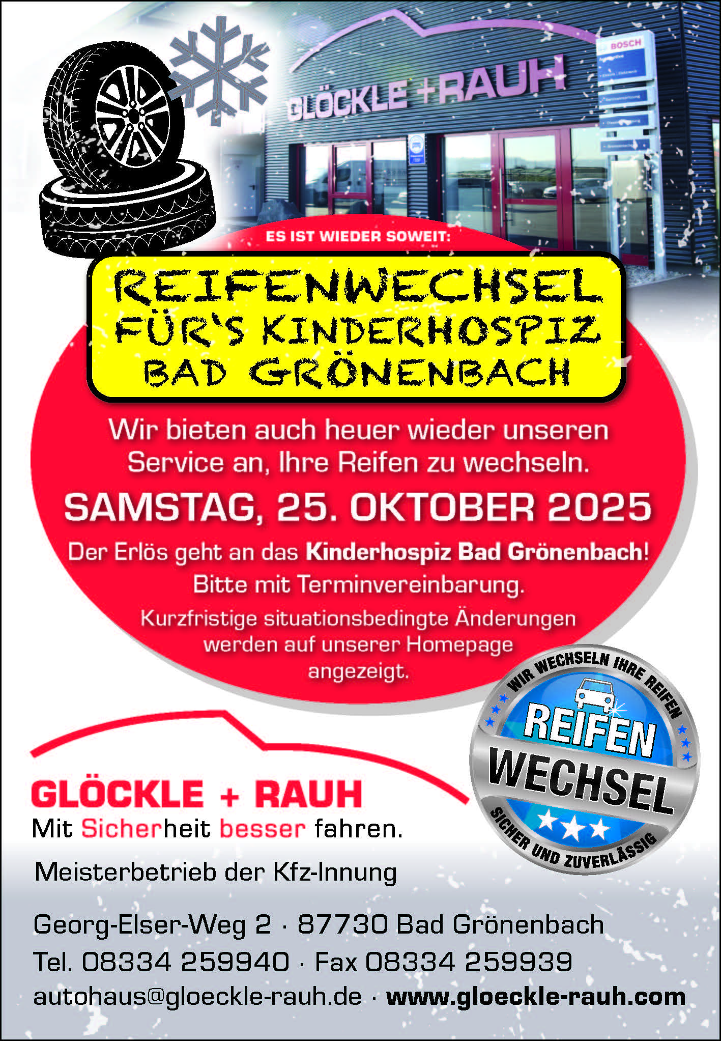 Auch dieses Jahr findet wieder unsere Reifenwechsel-Aktion statt. Seien auch Sie dabei und vereinbaren schon heute einen Termin. Die Erlöse gehen zu 100 % an das Kinderhospiz St. Nikolaus in...